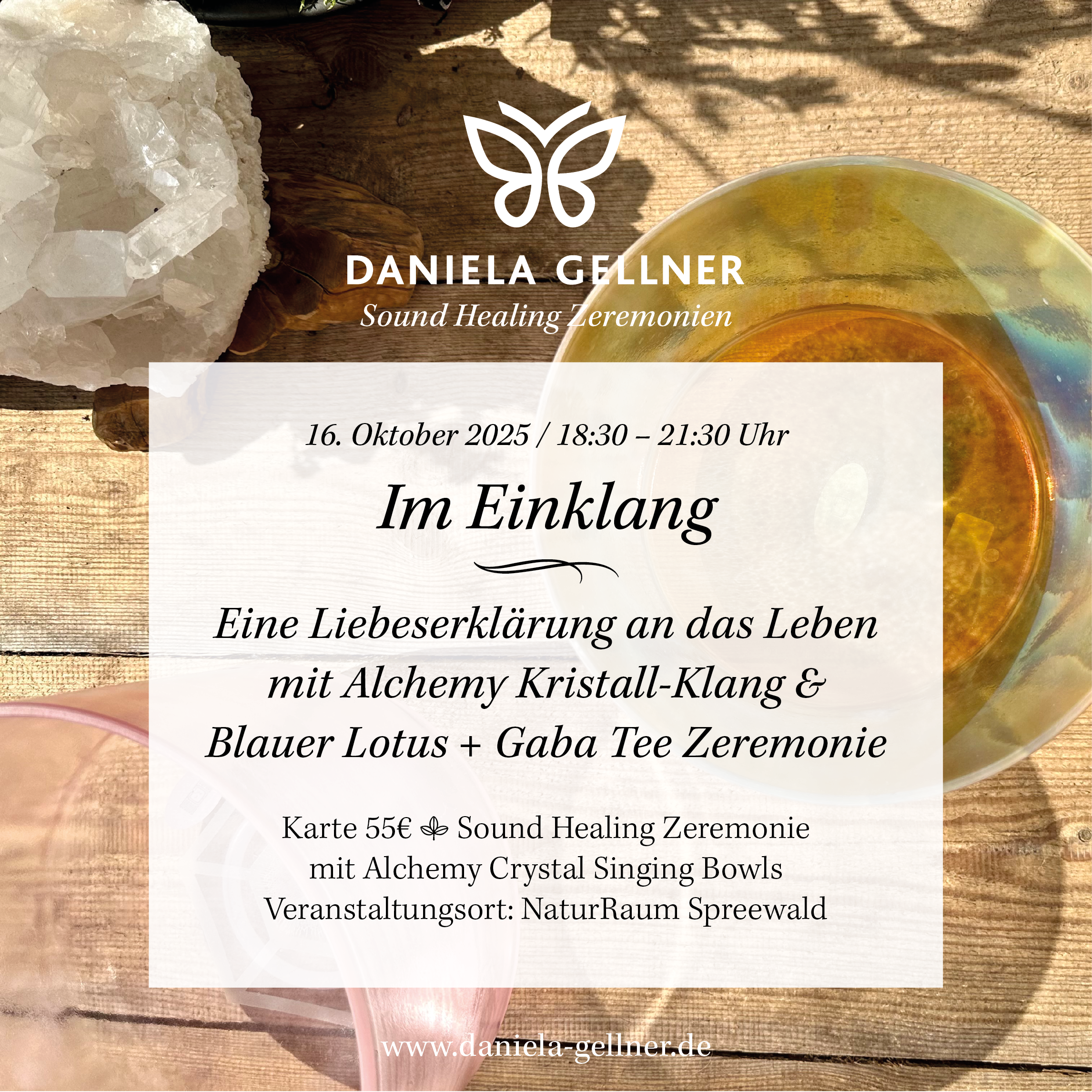 16. Oktober 2025 | Kristall-Klangreise & Blauer Lotus + Gaba Tee Zeremonie mit Daniela Gellner